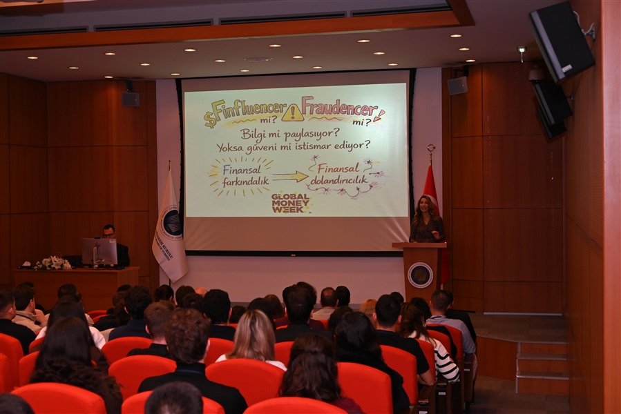 Küresel Para Haftası (Global Money Week) çerçevesinde “Siber Dünya ve Finansal İzler” programı kapsamında “Finfluencer mı yoksa Fraudencer mı?” adlı sunum yapıldı. Sunumda paravan hesaplar, finansal dolandırıcılıklar ve siber dünya tehditlerinden korunma yöntemleri, dijital izler aracılığıyla gerçekleştirilen ekonomik manipülasyonlara karşı güvenli alanda kalma, finansal iletişim ve sosyal medya okuryazarlığı gibi kritik konular güncel örneklerle anlatılmıştır.